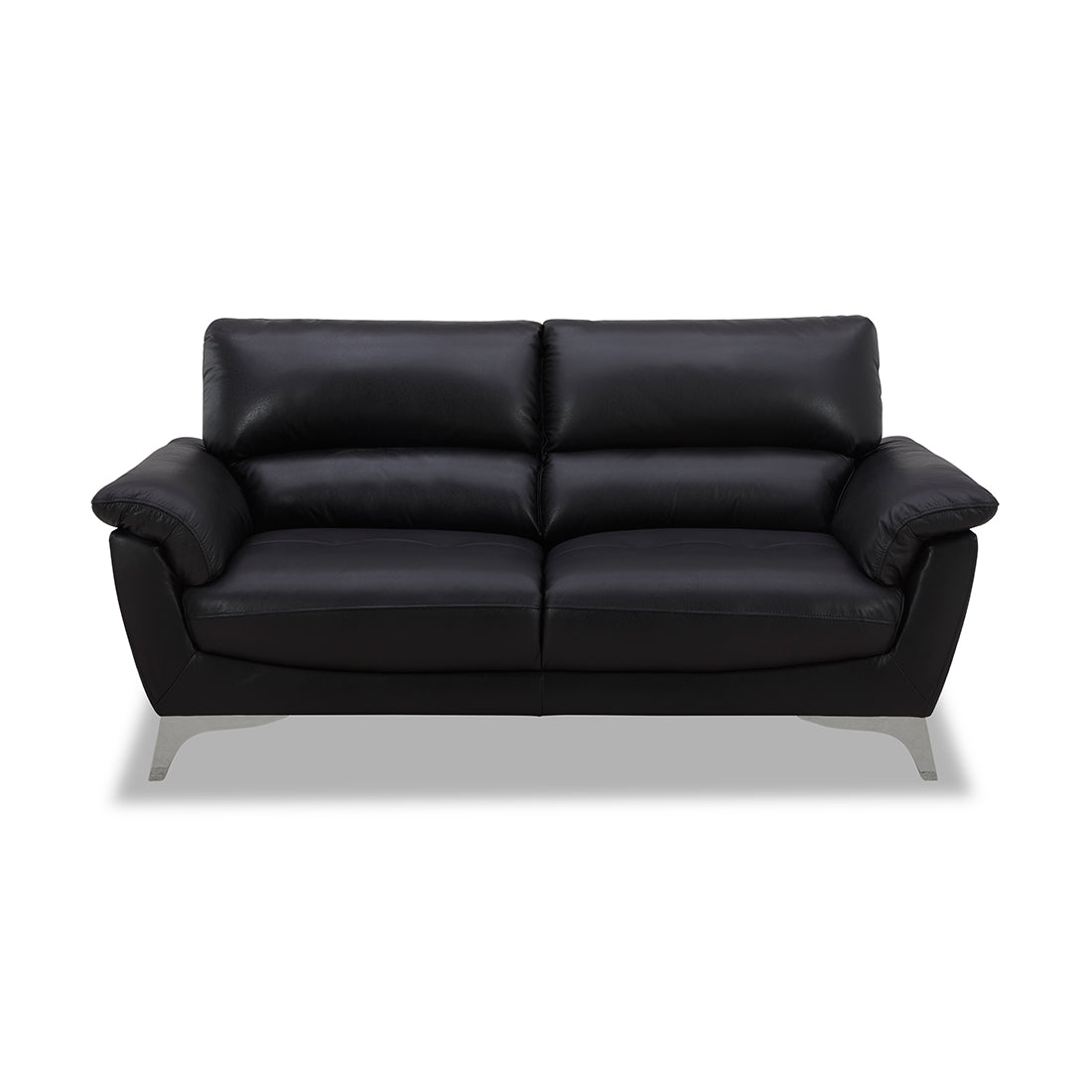 The Averlyn 2 Seater Black Leather Lounge combines classic design with modern durability. Crafted with smooth black leather upholstery, it offers both comfort and easy maintenance. Its silver legs add a sleek, contemporary touch while ensuring sturdy support. Ideal for living rooms or offices, this lounge provides a timeless aesthetic paired with lasting quality.
