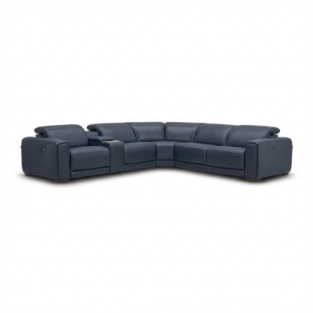 The Burbank Blue Corner Modular Reclining Leather Lounge combines luxury and advanced functionality. Crafted from premium leather, this modular lounge offers customizable seating with smooth electric recliners and adjustable headrests for personalised comfort. Integrated cupholders keep refreshments within easy reach, while built-in wireless, USB, and USB-C chargers ensure your devices stay powered. Designed for modern living, this lounge enhances relaxation and convenience in any space.