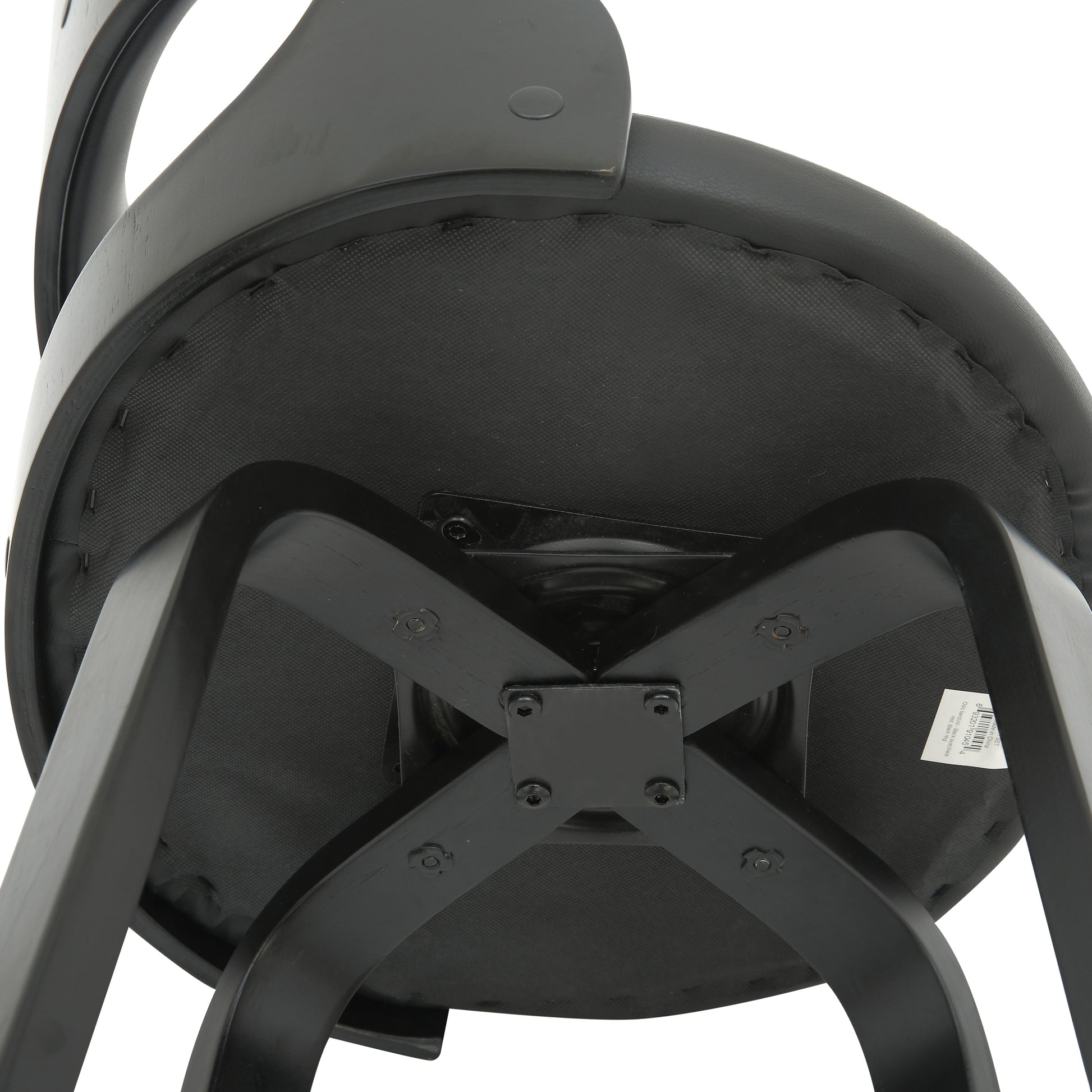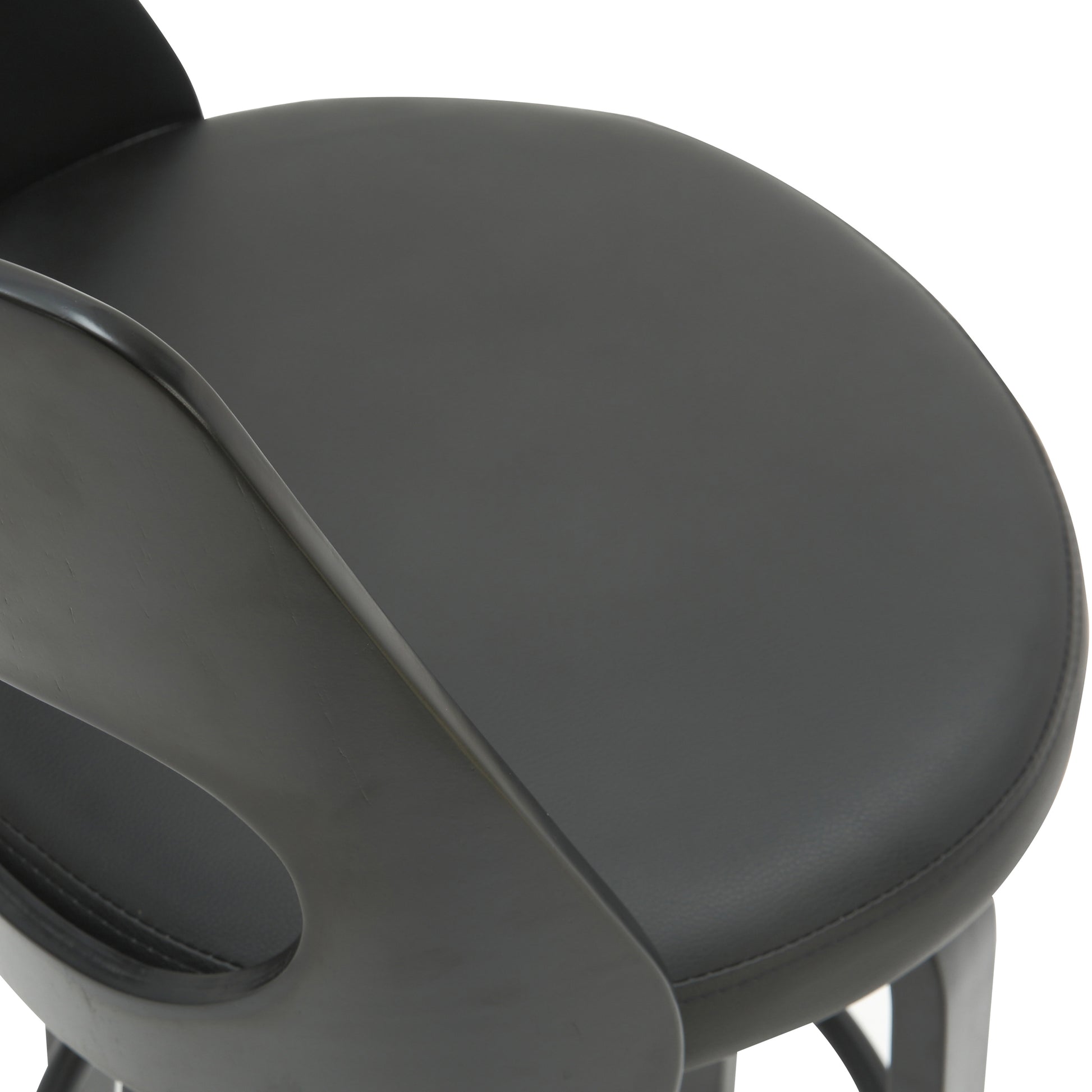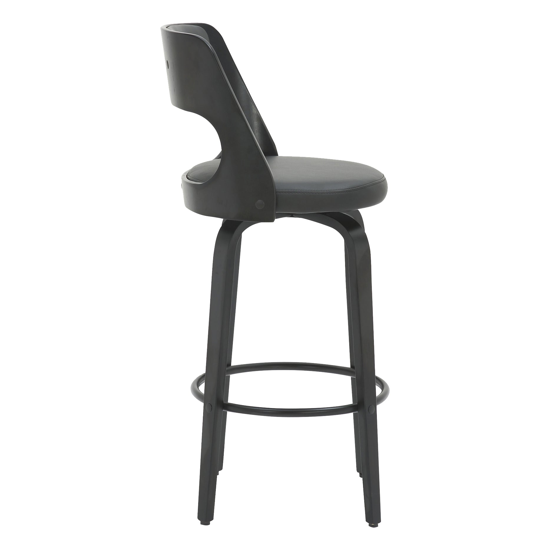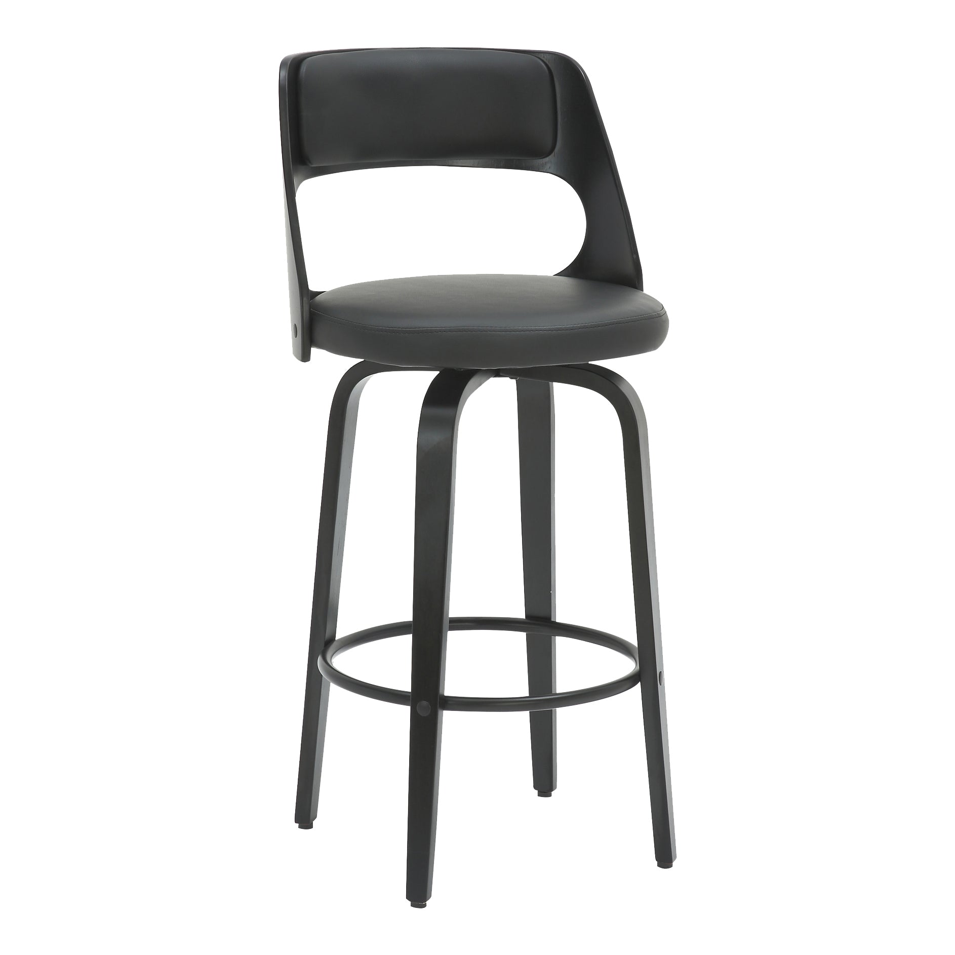 Elevate your space with the Oslo Black Bar Stool, crafted from solid timber for lasting strength and natural beauty. Its sleek black PU leather seat offers comfortable support, while the polished silver ring adds a modern touch. Designed with a smooth swivel function, this stool combines style and practicality, making it perfect for kitchens, bars, or dining areas where both elegance and functionality matter.